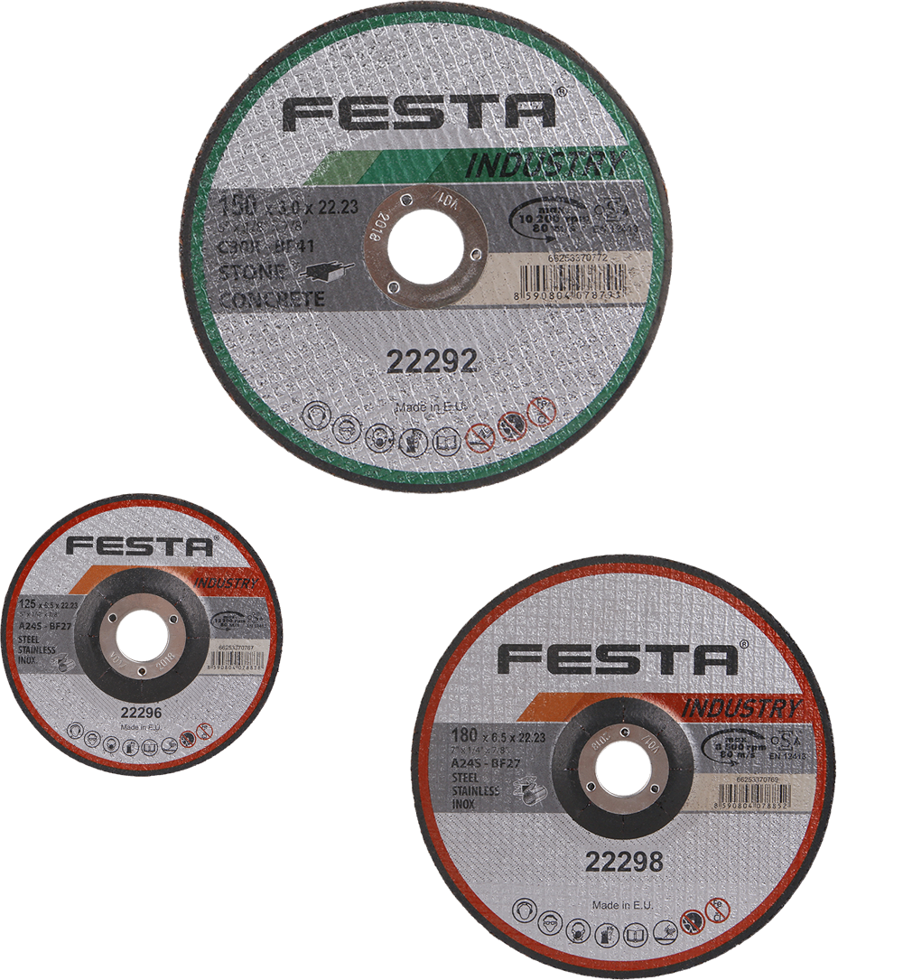 V současné době pod označením FESTA INDUSTRY nabízíme ucelenou řadu řezných a brusných kotoučů na nerez, litinu, kov a kámen, kterou pro nás vyrábí jeden z předních světových výrobců – firma NORTON.