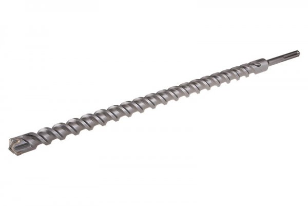 High-quality four-edged drill bit with precisely positioned cemented carbide plates (high hardness) soldered at a temperature of over 1000°C - for better tolerance of high temperatures during drilling, use: for hammer drilling of marble, stone, ceramics, bricks, concrete, etc., helix shape it has an ideal shape for quick removal of drilled material, attachment - SDS MAX, dimensions indicated in the product name.