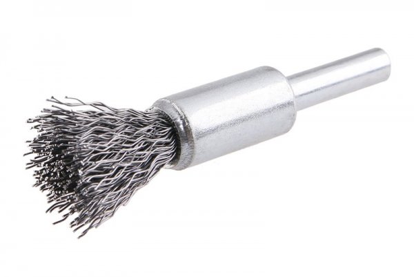 Rotary brush - wavy, FESTA brushes guarantee quality used materials and processing, wire 0.3 mm diameter 12 mm, stem 6 x 20 mm, galvanized brush body, number of wires: 150, wire length: 20 mm, max. permissible revolutions: 4500 1 /min, use: light sanding work and cleaning in hard-to-reach places, packaging: blister with euro hole.