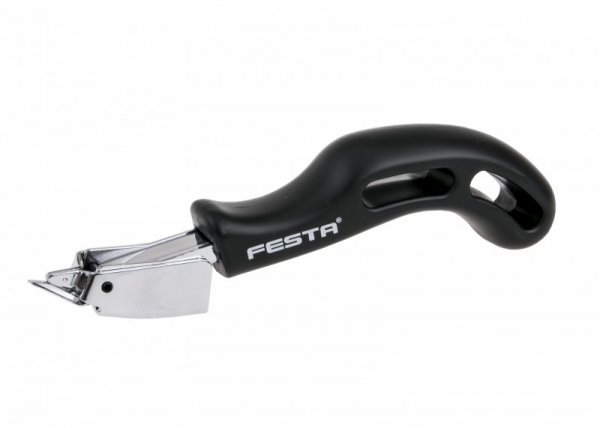 Staple puller for removing any type and size of staples. Pulling staples from cartons, pulling staples from soft wood, removing staples from the substrate, removing staples from packages, unstitching staples, etc. Ergonomically shaped plastic handle.
