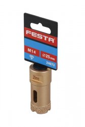 - recommended work procedure - screw the crown directly onto the thread of the angle grinder head, tighten firmly, circle start the desired hole at an angle of 45 °, the crown and the speed of the grinder will immediately secure the attachment in the desired place, slowly straighten the direction of the rounding to a vertical position with evenly created pressure, smaller diameters of 6 - 14 mm are used when drilling into hard pavements, between individual holes, COOL - just immerse in a glass of water or let it cool in the air during revolutions!