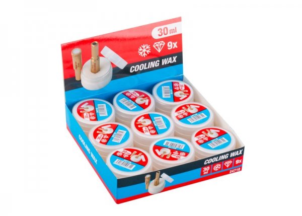 - wax can be used in two ways - cold by pressing into the crown, or - hot during drilling, after stopping the machine, insert the crown into the wax for about 2 seconds and after that, let it cool down for 3-5 seconds, then you can continue drilling