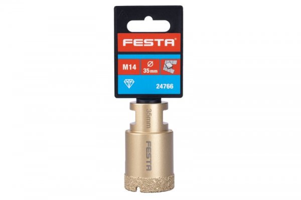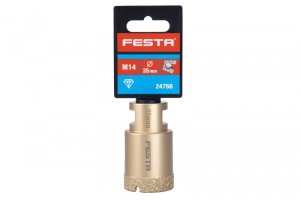• recommended work procedure - screw the crown directly onto the thread of the angle grinder head, tighten firmly, start to circle the desired hole at an angle of 45 ° , the crown and the speed of the sander will immediately ensure attachment in the desired place, slowly straighten the direction of the circular motion to a vertical position with evenly created pressure, smaller diameters of 6 - 14 cm are drilling into hard pavements, between individual drills, COOL - just immerse in a glass of water or let it cool in the air during revolutions!