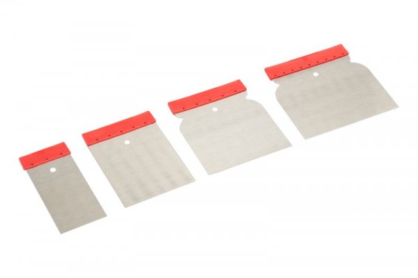Set of Japanese steel squeegees 4 pcs 50, 80, 100, 120 mm FESTA. Steel blade, plastic handle.