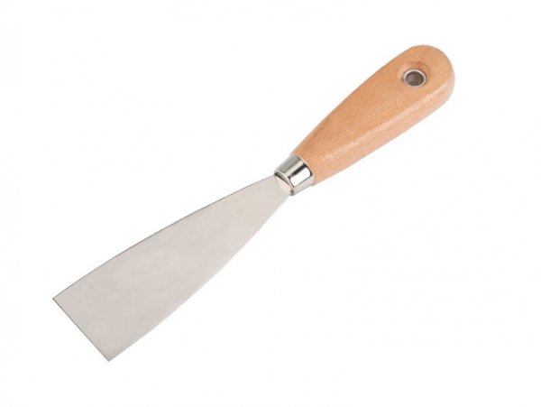 FESTA stainless steel wedge spatula 40 mm with wooden handle. It is used in plastering, painting, painting, body repairs or artistic creation, etc. It is suitable for spreading plaster or other sealants or for removing old paint and coatings.