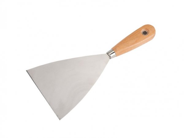 FESTA stainless steel wedge spatula 100 mm with wooden handle. It is used in plastering, painting, painting, body repairs or artistic creation, etc. It is suitable for spreading plaster or other sealants or for removing old paint and coatings.
