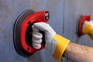 - přísavka má speciální okraj pro práci nejen s hladkými povrchy, ale také se strukturovaným povrchem obkladu nebo dlažby, přísavku lze použít také pro přenášení skel, oken, dveří, lamina, plechů apod.