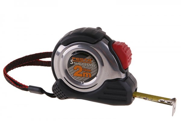 Kvalitní svinovací metr, kalená páska, dobře čitelná stupnice, EEC certifikát - metr vhodný ke kalibraci, pouzdro metru z nerezové oceli s gumovou ochranou - vyšší odolnost při nárazech a lepší stabilita při manipulaci s měřidlem, doraz pásky z měkčené gumy, koncovka pásky volně uložená pro měření vnějších i vnitřních rozměrů, poutko, klip na opasek.
