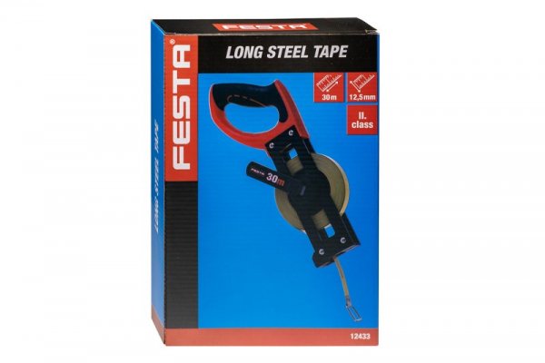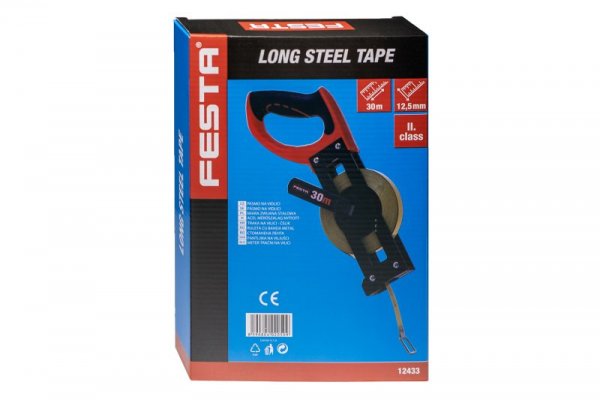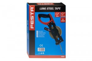 Kvalitní ocelové pásmo, kalená páska s očkem, otevřené provedení - kovové vedení s ergonomickou rukojetí z ABS plastu, EEC certifikát - vhodné ke kalibraci, sklopná navíjecí ručka.