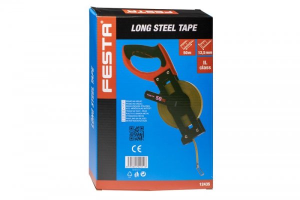 Kvalitní a přesné ocelové pásmo, kalená páska s očkem, otevřené provedení - kovové vedení s ergonomickou rukojetí z ABS plastu, EEC certifikát - vhodné ke kalibraci, sklopná navíjecí ručka.