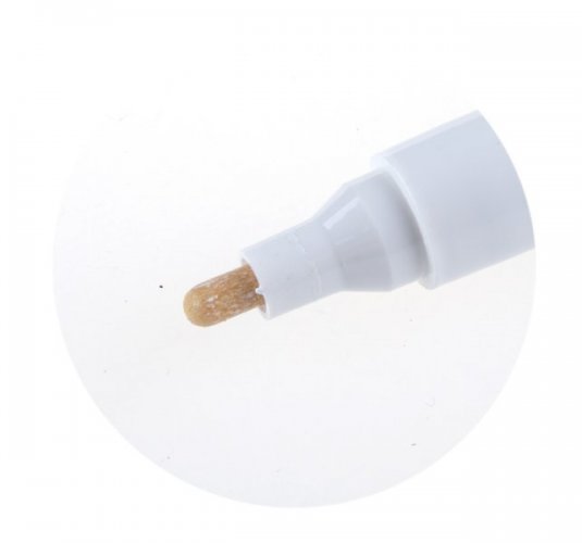 Speciální značkovací barva v hliníkovém pouzdře, síla hrozu 4 mm - bílý, popisy železných konstrukcí, skla, plastů, černých strečových folií a tmavých podkladů, max.80°C.
