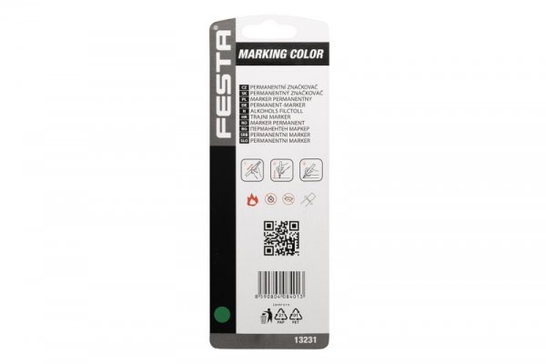 Speciální značkovací barva v hliníkovém pouzdře - zelený, síla hrotu 4 mm - popisy železných konstrukcí, skla, plastů, černých strečových folií a tmavých podkladů, max.80°C.