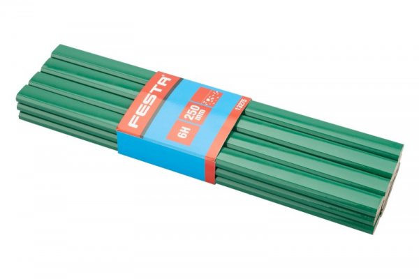 Tužka s tvrdou tuhou 6H, nehrocená, použití - kámen, stavba, zelený lak.