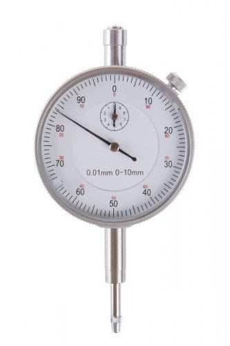 Číselníkový úchylkoměr, rozsah měření 0-10mm s přesností 0,01mm. Průměr budíku 6 cm.