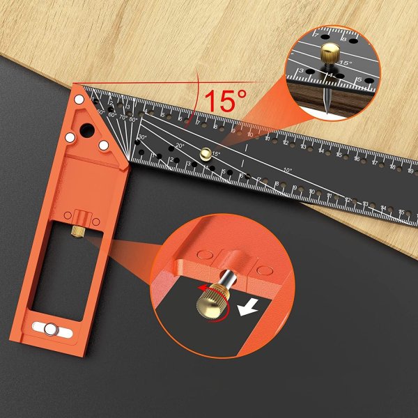 - stupnice a speciální otvory - naznačené úhly pro široký rozsah použití, zaměření, značení a práce se dřevem, kovy, plasty apod.