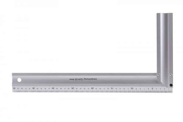 Hliníkový úhelník, měřící rameno se stupnicí v mm, zesílený profil, kvalitní zpracování.
