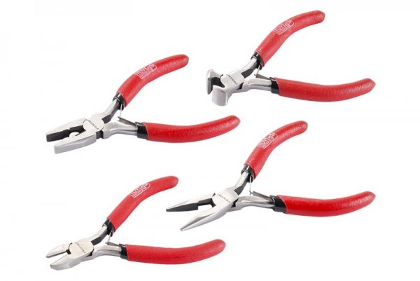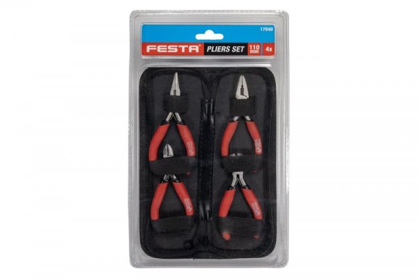 Sada minikleští (110mm) v praktickém uzavíratelném pouzdře, obsah sady: kombinované, radiové, boční a čelní štípací kleště, pogumované rukojeti, pro jemnou dílenskou práci.
