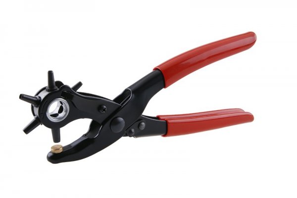 Revolverové děrovací kleště na kůži, textil a plast. Kleště s 6 výměnnými průbojníky v pr.: 2.0, 2.5, 3.0, 3.5, 4.0, 4.5 mm.