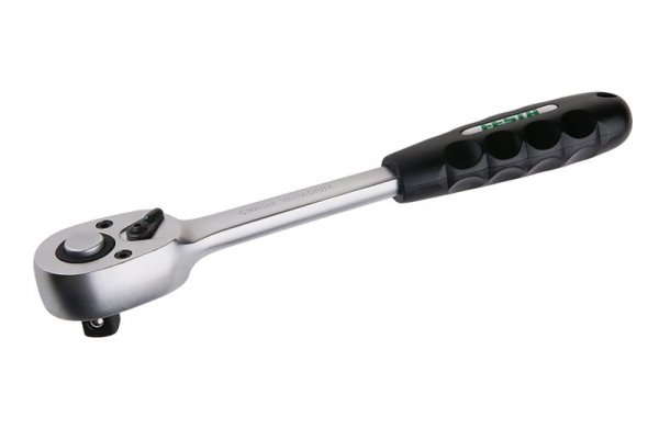 Kvalitní ráčna, kovaná z chrom - vanadiové oceli, pro každou dílnu, 1/2 - 36 zubů s ovládací páčkou a ergonomickou gumovou oválnou rukojetí. Rohatku momentového klíče tvoří 36 kalených zubů, které umožňují krok záběru již po 10-ti obloukových stupních velkou silou.