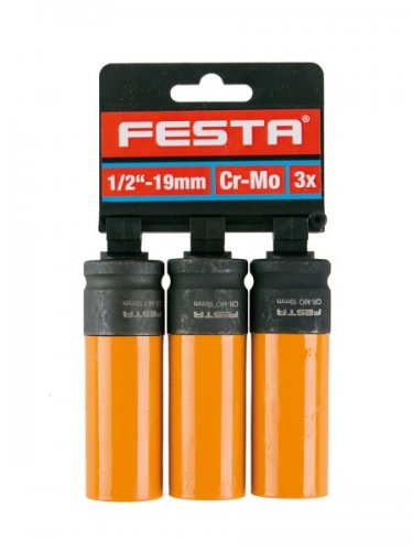 Vysoce kvalitní sada hlavic na litá kola FESTA, vyrobeno z Cr-Mo oceli - vynikající kvalita materiálů i zpracování pro průmyslové a profesionální použití, 1/2" uchyt, vhodné pro pneumatické nástrioje, plastová ochrana proti poškození disku. Baleno na zavěsu s eurootvorem.