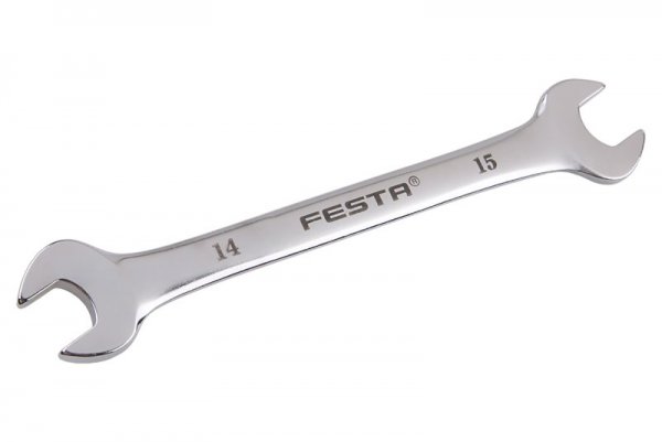 Klíč otevřený FESTA je kovaný z jednoho kusu chromvanadiové oceli dle normy DIN3110, ošetřené dvěma vrstvami niklu a jednou vrstvou chromu. Vhodný do autodílen a do praktického denního nářadí.