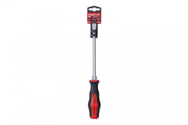 Kovový dřík šroubováku FESTA je vyroben z kvalitní chromvanadiové oceli, kalený hrot je magnetický, dřík šroubováku je pevně spojen s úderovou koncovkou, u rukojeti je šestihran pro použití klíče, kombinace polypropylenu a pryže na rukojeti a její ergonomický tvar zaručuje dobré antiskluzové vlastnosti a dobrou odolnost vůči mazadlům a chemikáliím.