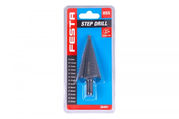 - stupňovitý vrták z kvalitní HSS oceli DIN 1412C se speciální TiAlN vrstvou - Titan Aluminium Nitrid