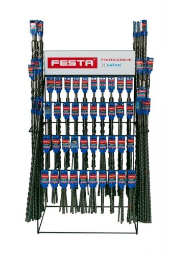 - praktický stojan na různé druhy vrtáků a sekáčů SDS+ a MAX, které se na stojan zavěšují