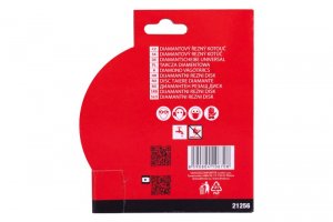 - celoobvodové provedení, síla kotouče jen 1 mm, pro rychlé, přesné a čisté řezání tvrdých glazovaných dlažeb a obkladů, gresu, keramiky, porcelánu, apod.