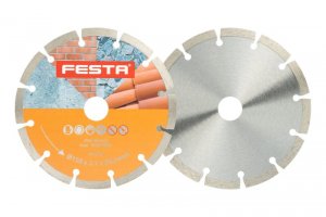 Profesionální diamantový kotouč FESTA, provedení : SEGMENTOVÝ, kvalitní materiály i zpracování - vysoce pevné uchycení diamantových segmentů k nosnému disku kotouče, vysoký obsah diamantového prachu v segmentech, použití : pro suché řezání betonu, cihel, zdiva, kamene, ... , balení : blistr s eurootvorem, rozměry : uvedeny v názvu výrobku.