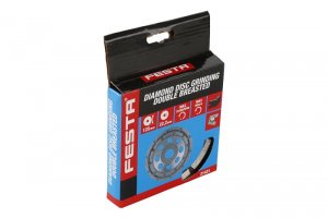 Brusný diamantový kotouč FESTA -dvouřadý, robustní nosný talíř je z pevné slitiny, speciální konstrukce uchycení diamantových segmentů k nosnému disku kotouče, vysoký obsah diamantového prachu v segmentech, použití : pro suché i mokré broušení mramoru, žuly, cihel, zdiva, přírodního i umělého kamene, obkladů, dlažeb, betonu..., tvar a provedení segmentů je vhodné pro hrubé a rchlé obrušování, rozměry : uvedeny v názvu výrobku, balení : papírový box s eurootvorem.