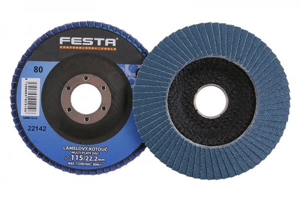 Zrnitost: 80 Druh Zrna: oxid zirkoničitý Pojivo: umělá pryskyřice Podkladový materiál: pružná tkanina-100% bavlna (240-260g/m2) Provedení: vyhnutý vnitřní průměr: 22,2mm Max. Pracovní rychlost: 80m/s Max. přípustné otáčky: 13300 1/min.
