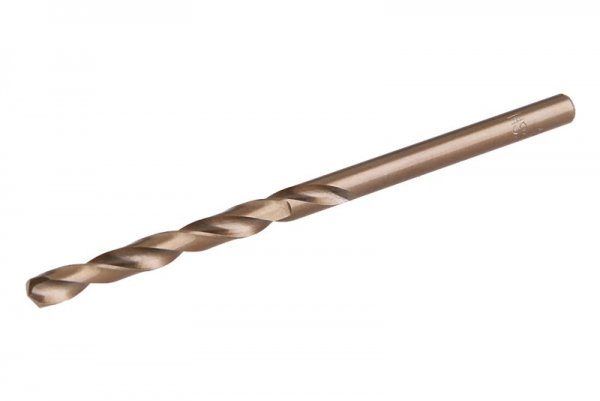 Vysoce kvalitní vybrušovaný vrták HSS-Co. 5% DIN 338 ve zlatohnědé povrchové úpravě. Úhel ostření 135°. Vrták je určen k vrtání legované i nelegované oceli, železa, litiny nebo barevných kovů až do pevnosti 1400 MPa. Dodává se po 1 kuse.