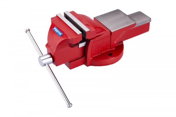 Masivní svěrák s kovadlinkou z litiny, tvrzené čelisti, tělo a pohyblivé rameno odlité každé z jednoho kusu zaručuje velkou odolnost a pevnost, váha:4800g, Max. rozevření: 80mm.