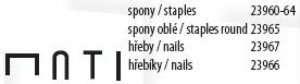 Robustní odolná konstrukce, Přesnost sponkování-možnost seřízení hloubky zaražení spony, Spony: 4-14mm(23960-64), Hřeby: 14mm(23967), Hřebíky: 14mm(23966), Spony oblé(23965),Váha: 880g, Snadné nabíjení,0 Použití: čalounění, přichycení izolačních folií, parozábran, papíru, kartonu, koberců.