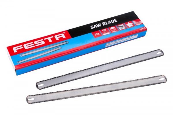 Materiál: legovaná ocel, dvoustranné ozubení (jedna strana na dřevo/druhá na kov) TPI: 24, použití: k řezání oceli, barevných kovů, plastů a dřeva.