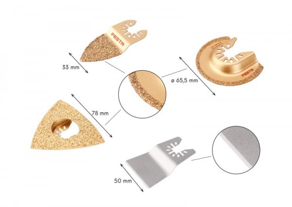 - sada nástrojů s univerzálním OIS upínáním pro oscilační brusky