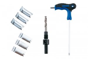 - nastavitelná vykružovací korunka do dřeva, OSB desek, sádrokartonu, lamina, plastů apod.