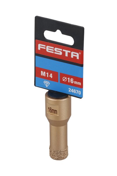 - doporučený pracovní postup - našroubujte korunku přímo na závit hlavy úhlové brusky, pevně dotáhněte, vykružovat požadovaný otvor začněte pod úhlem 45 °, korunka a rychlost brusky okamžitě zajistí uchycení v požadovaném místě, pomalu při rovnoměrně vytvořeném tlaku narovnejte směr vykružování do svislé polohy. Menší průměry 6 - 14 mm jsou u vrtání do tvrdých dlažeb. Mezi jednotlivými vrty ZCHLADIT - stačí ponořit do sklenice s vodou nebo nechat v otáčkách ochladit vzduchem!
