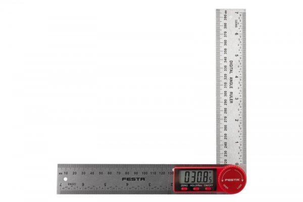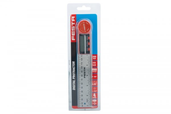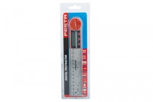 Digitální úhloměr pro měření vnitřích i vnějších úhlů. Vybaven zajišťovacím šroubem pro přidržení určitého úhlu. Měřícího rozsahu ± 360 °. Přesnost ± 0,3 °. Pracovní teplota 0-50°C. Automatické vypnutí. Nastavení nuly v libovolné poloze. Stupnice pravítka 1 mm a 1/32 palce. Průřez pravítka 35 x 2,5 mm. Dva montážní otvory. Aretace šroubek. Napájení 1 baterie typu CR2032 3V.