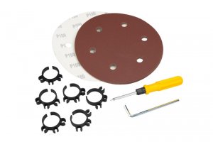 - sací hadice 4 a 1,5 m, vak na prach, 6x brusný výsek 225 mm(P80, P100, P120, P150, P180, P240) kufr