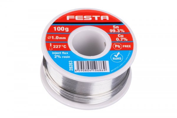 Drát pájecí trubičkový FESTA Sn 99,3%/0,7%Cu, O 1mm, 100g