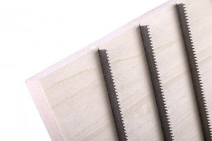 • kalené pilové plátky s jemnými zuby 14 TPI, kvalitní topolové dřevo, ergonomická dvoukomponentní rukojeť