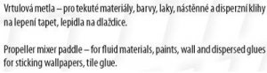 - použití : pro tekuté materiály, barvy, laky, nástěnné a disperzní klihy na lepení tapet, lepidla na dlaždice, tvar lopatek je uspůsobený tak, aby došlo k dokonslému míchání směsi bez nežádoucího znečištění