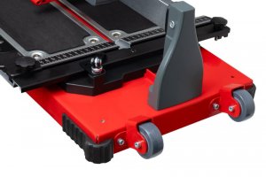 - pro snadnější manipulaci je řezačka opatřena pojezdovými kolečky a masivním madlem PŘI PŘEVOZU NEBO MANIPULACI S ŘEZAČKOU ZAJISTĚTE ŘEZNOU HLAVU ŘEZAČKY ARETAČNÍM ŠROUBEM PROTI SAMOVOLNÉMU POJEZDU!