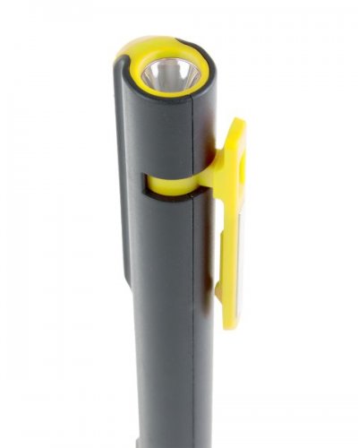 LED svítilna, 200mm, s čelním svícením 40 lumen a bočním 120 lumen, magnety k připevnění, otočný klip. 3xAAA.
