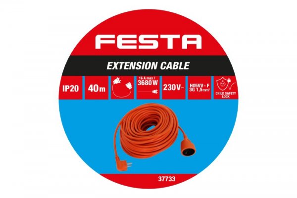 Kabel prodlužovací FESTA 3x1.5mm 40m 230V max.3680W IP20