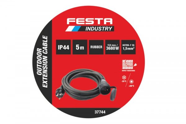 Kabel prodlužovací venkovní FESTA INDUSTRY 3x1.5mm 5m 230V max 3680W guma-neopren IP44