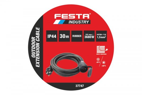 Kabel prodlužovací venkovní FESTA INDUSTRY 3x1.5mm 30 m 230V max 3680W guma-neopren IP44