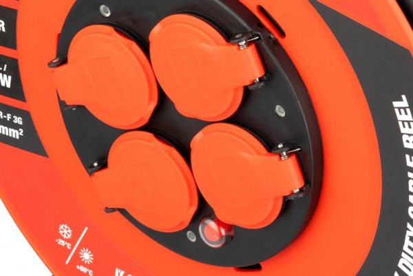 - prodlužovací kabel na bubnu se 4mi zásuvkami 3 x 1,5 mm na 230 V, pro venkovní použití